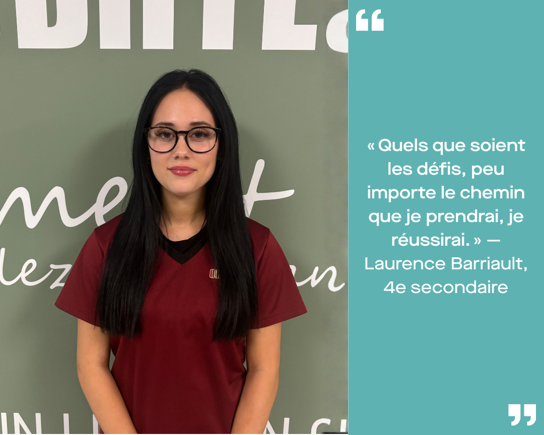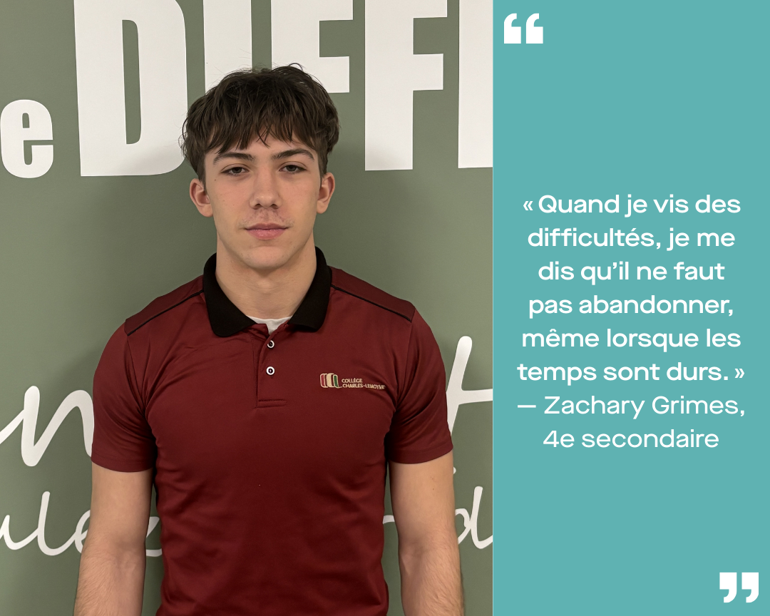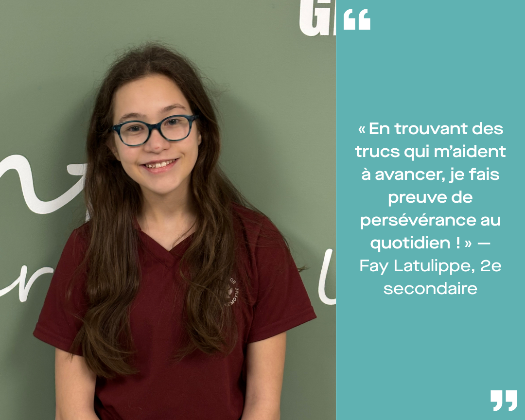Dans nos deux campus, des élèves qui font preuve de persévérance au quotidien ont été identifiés. Nous leur avons simplement demandé de partager, en quelques mots, ce que la persévérance signifie pour eux ou un défi qu’ils ont surmonté.